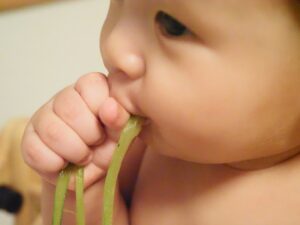 生後2ヶ月からバウンサーで揺らされたり、おぶられたりしながら母と一緒に相談室にいた子です。
